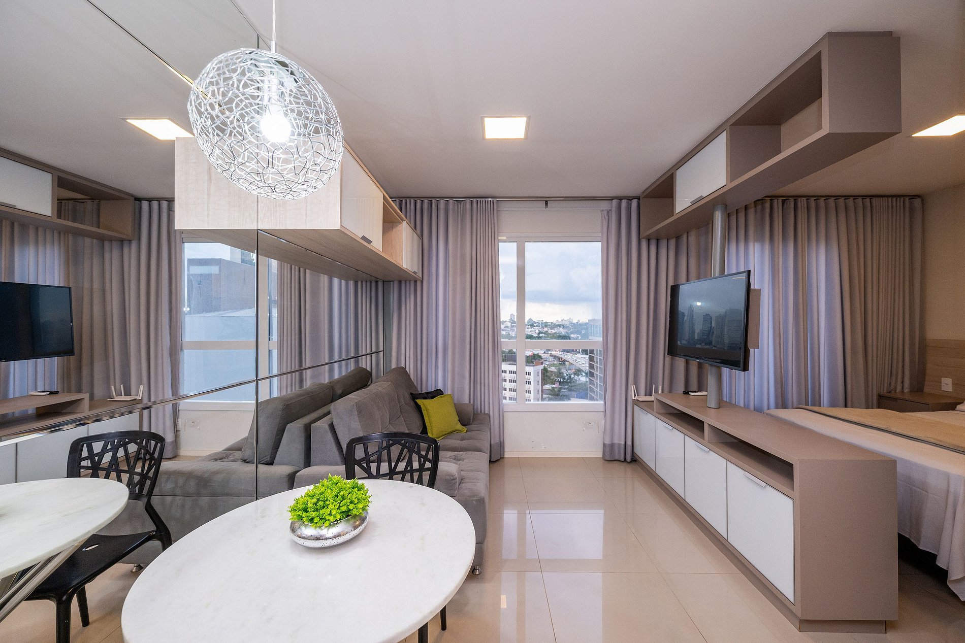 Condominium located in a high-end neighborhood, Metropolitan Sidney Smart Style - Jardim Goiás Neighborhood, Metropolitan Sidney Building, in the southern part of the city. It is considered one of the most desirable areas to live and visit according to locals. Whether for its variety of shops, business centers, restaurants, cafes, or its wide selection of parks and recreational spaces, the neighborhood welcomes different lifestyles and people. Fully furnished apartments.
