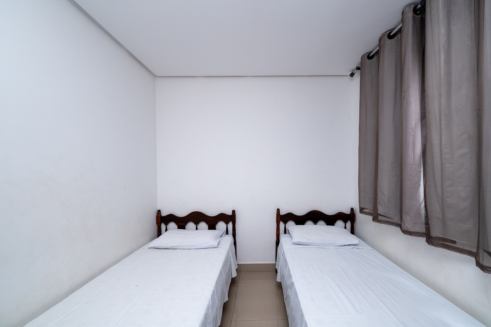 - 1 Quarto com 2 camas de solteiro, armário, TV Smart e ar-condicionado;