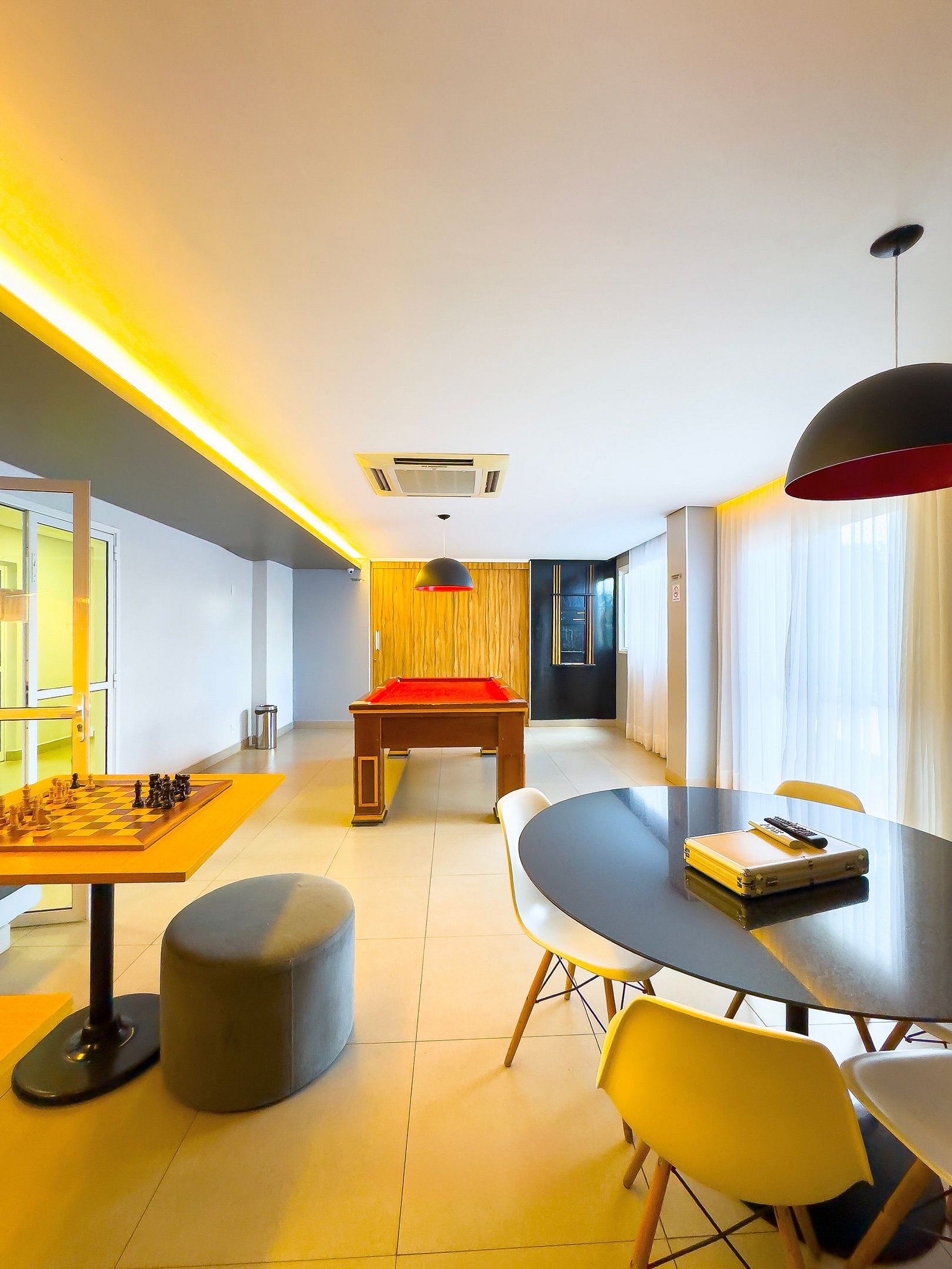 - Espaço para jantar com 6 cadeiras e ar condicionado;