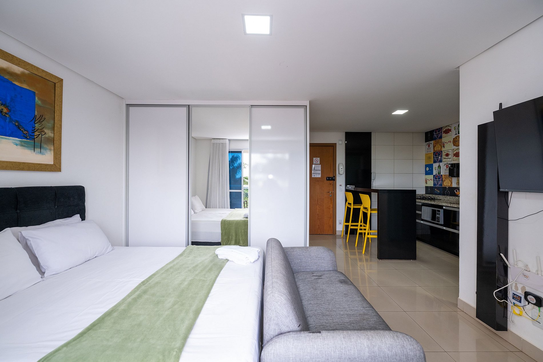 Cozinha equipada, Smart TV, Wi-Fi rápido, ar-condicionado, varanda com vista, check-in sem chave e tudo o que você precisa para máximo conforto durante a estadia.