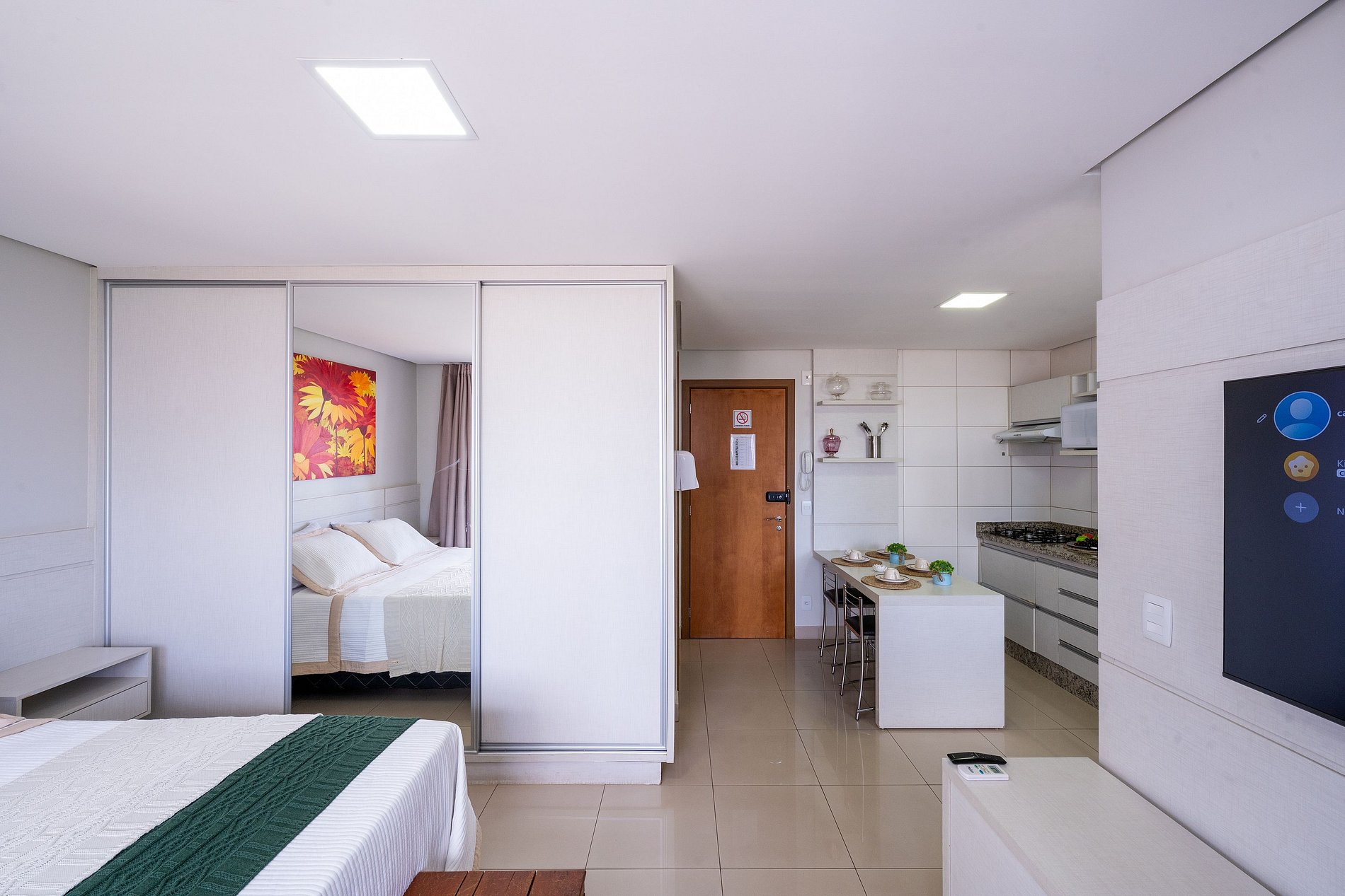 Cozinha equipada, Smart TV, Wi-Fi rápido, ar-condicionado, varanda com vista, check-in sem chave e tudo o que você precisa para máximo conforto durante a estadia.