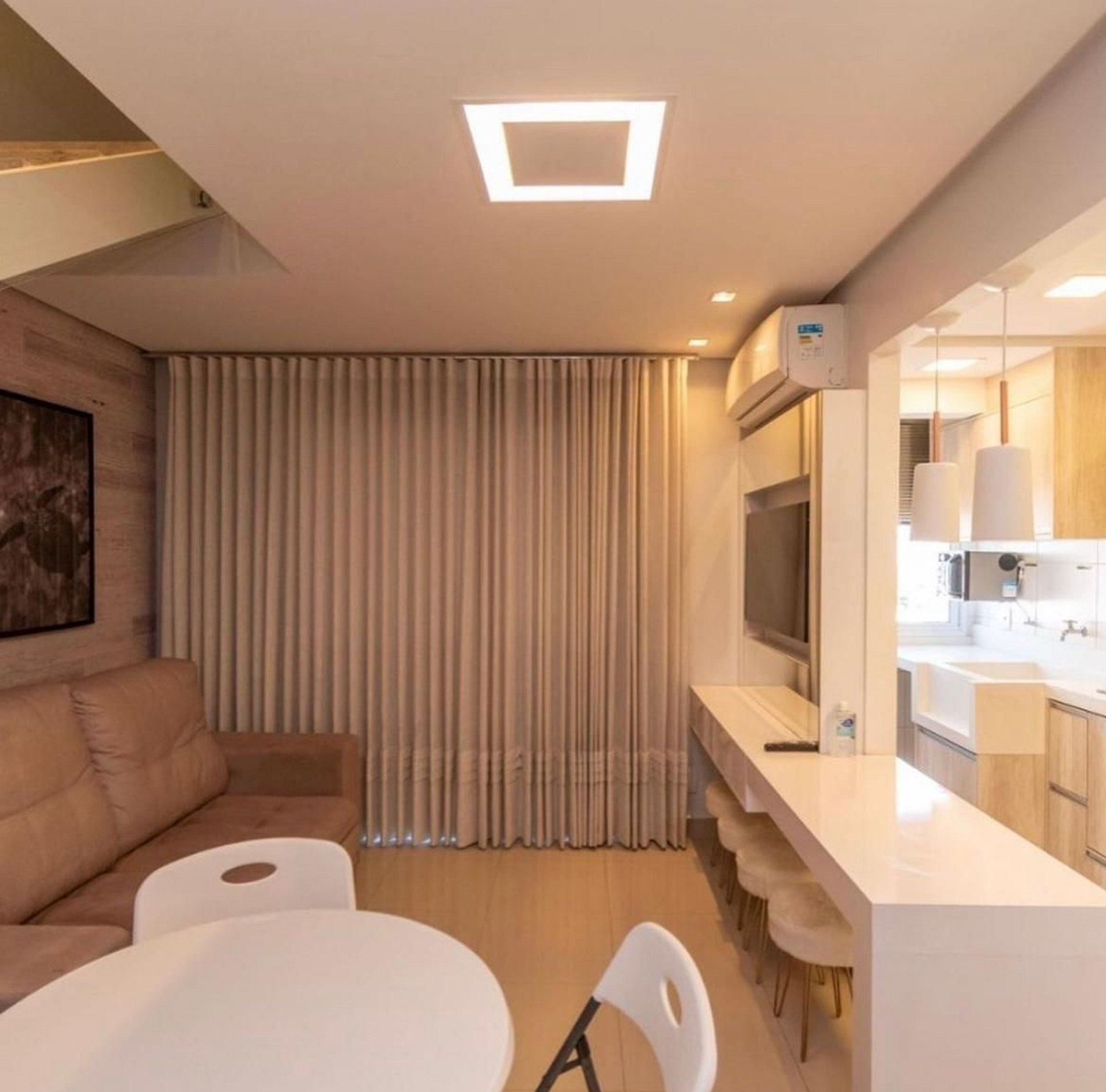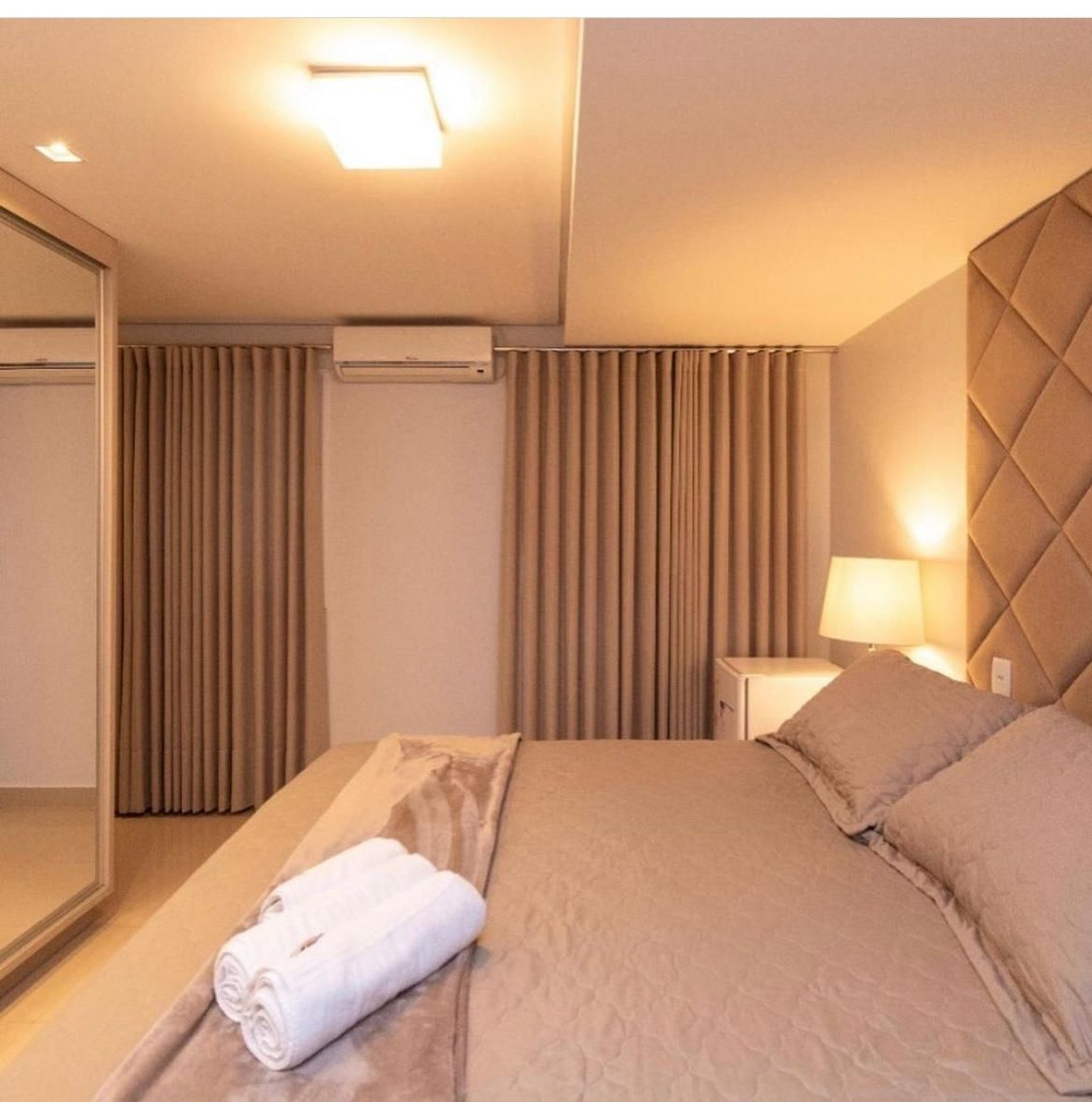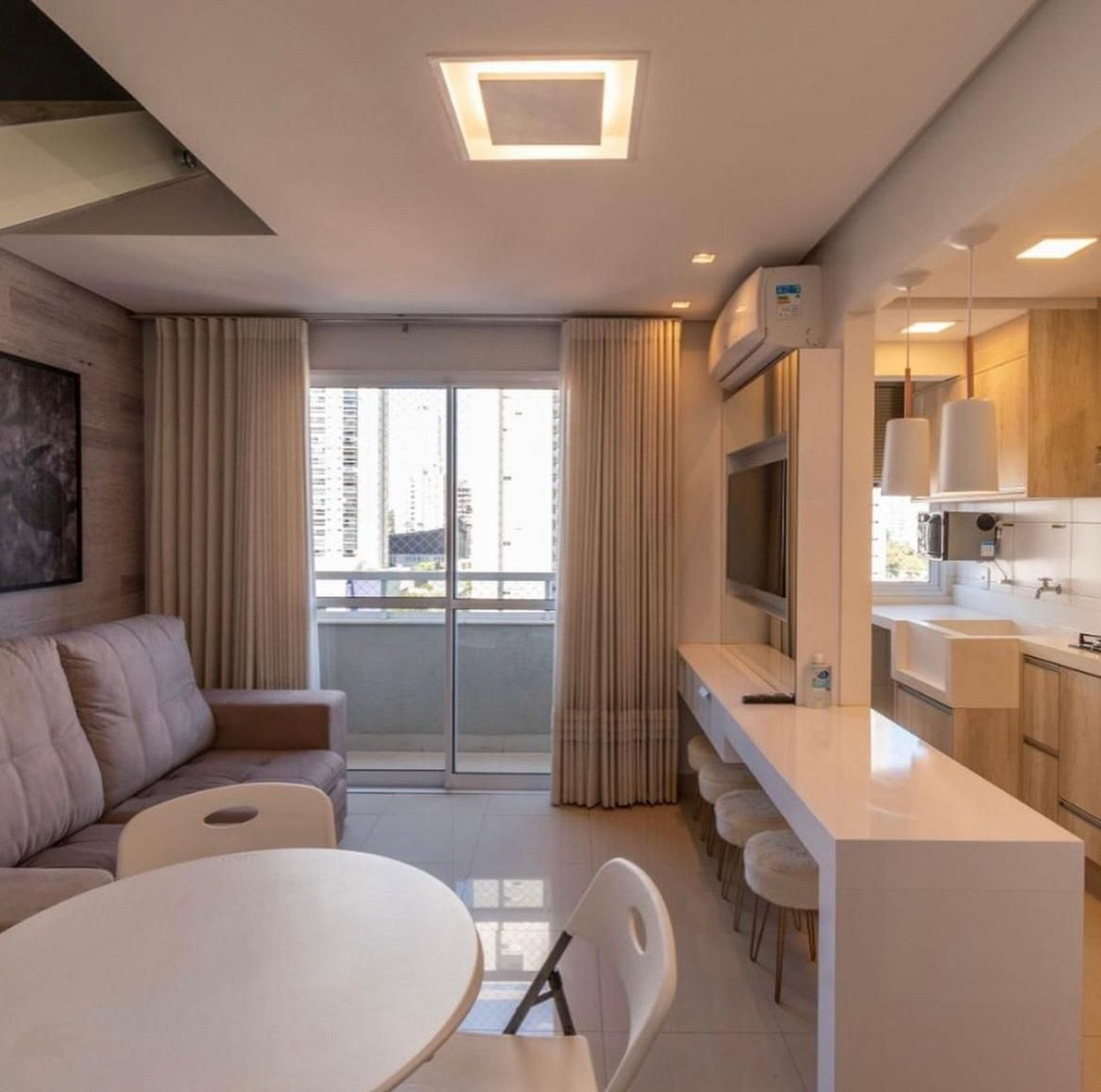 - Sala: TV Smart, ar condicionado, cortina blackout;