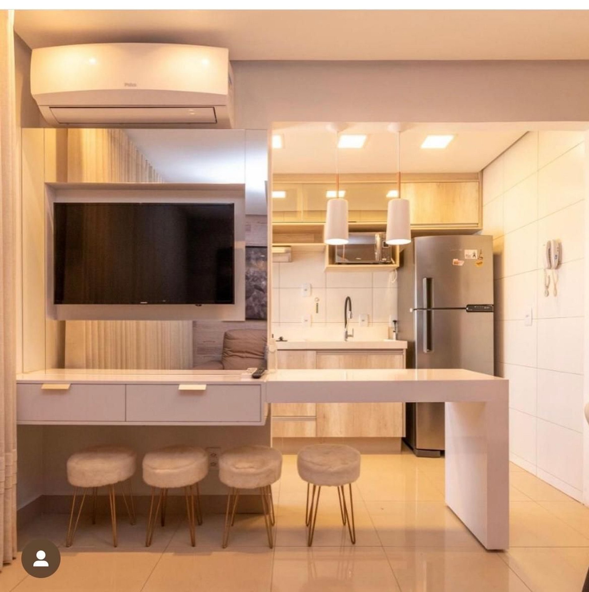 - Espaço para jantar com 02 cadeiras;
