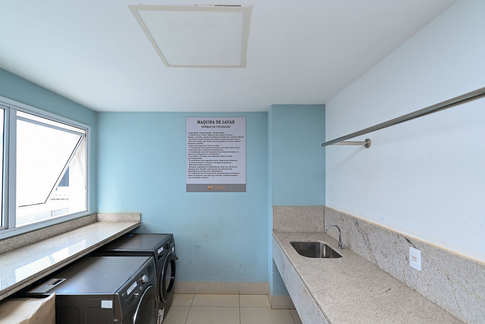 - Não é permitido pendurar roupas e/ou toalhas na sacada do apartamento;