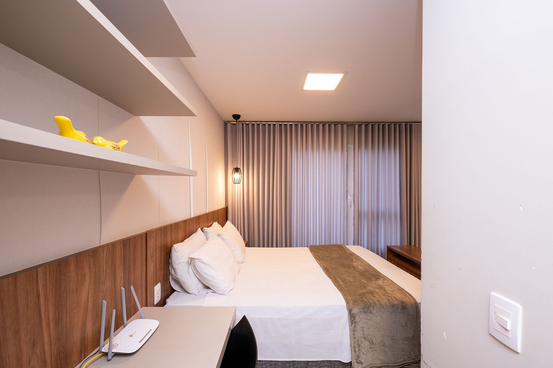 - Roupas de cama e banho de qualidade hoteleira;