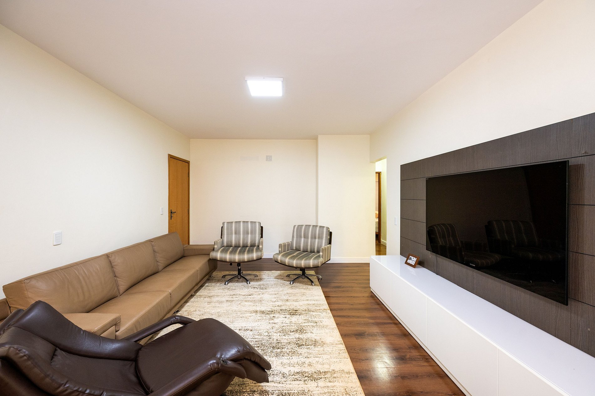 - Sala de estar com sofá, Smart TV;
