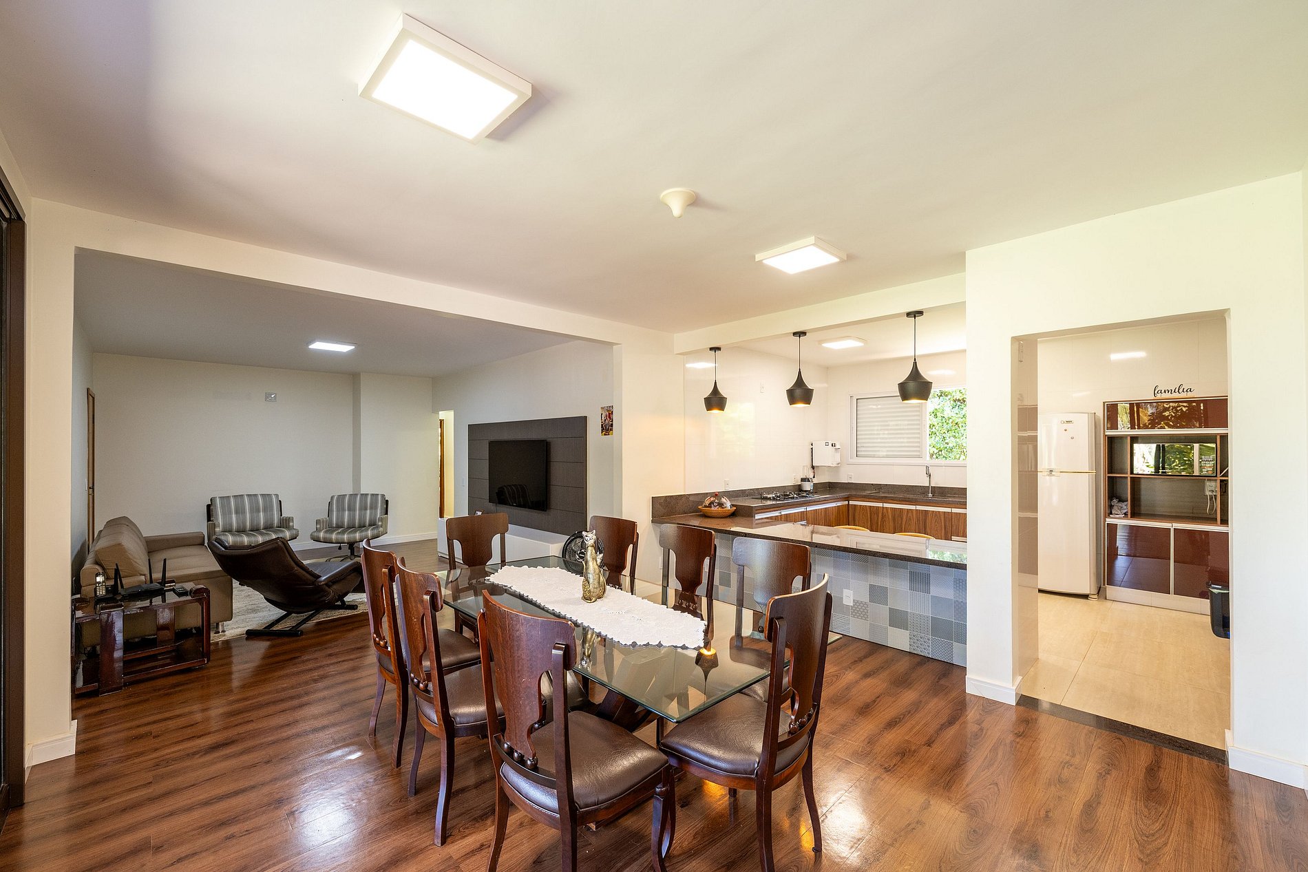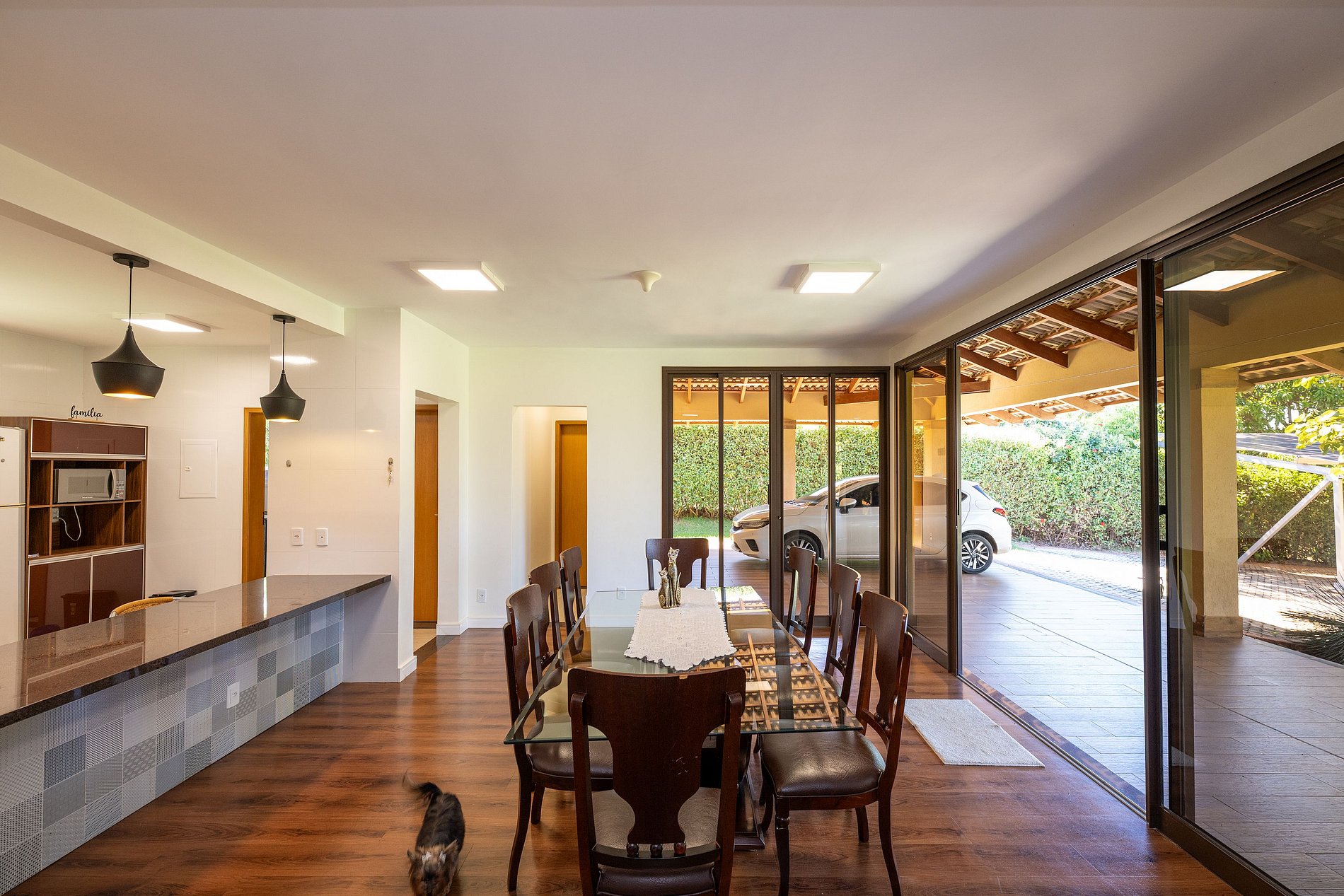 - Espaço para jantar com mesa e cadeiras;