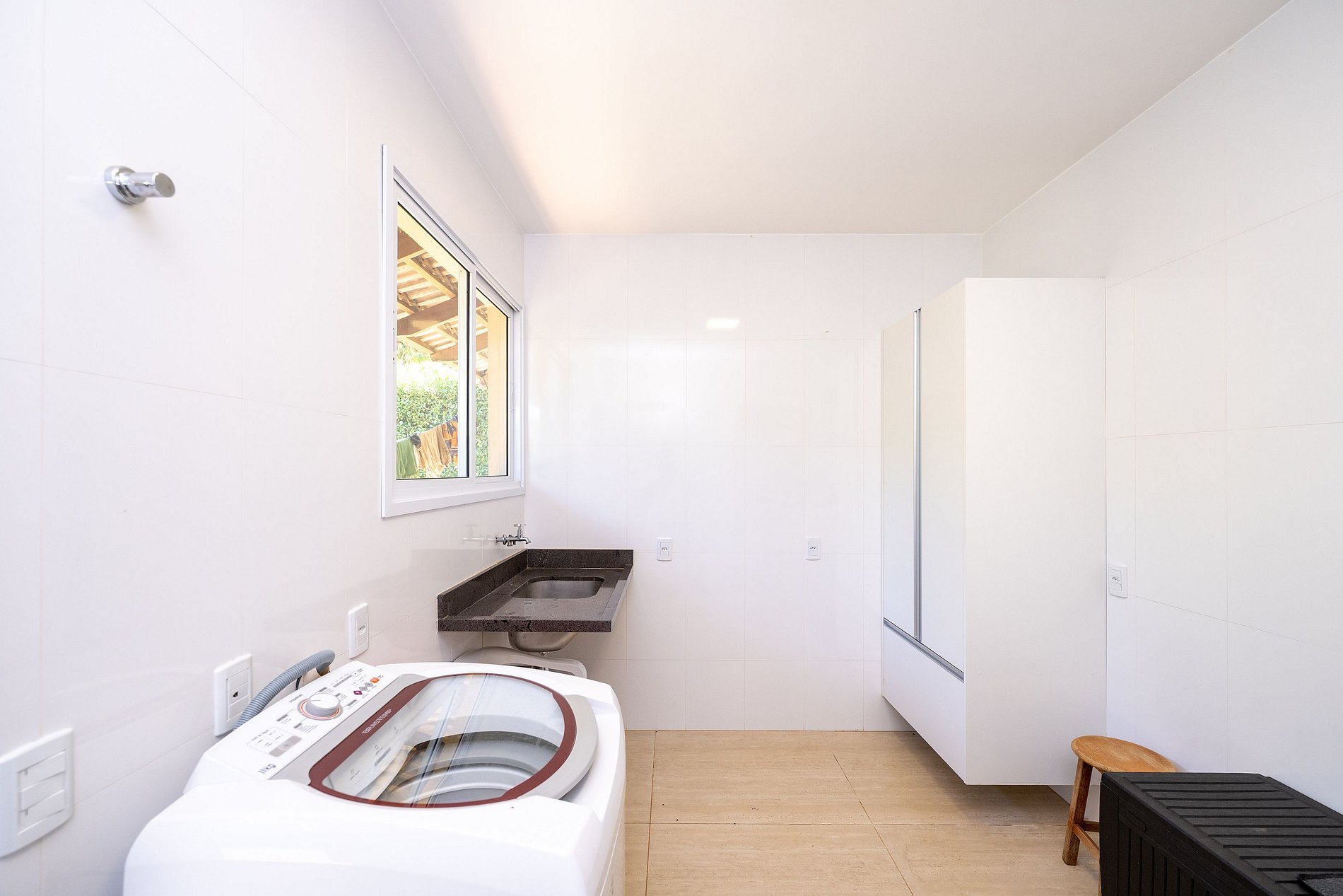 A casa dispõe de Wi-Fi, máquina de lavar e enxoval de cama e banho de alta qualidade, garantindo praticidade e bem-estar durante toda a estadia.