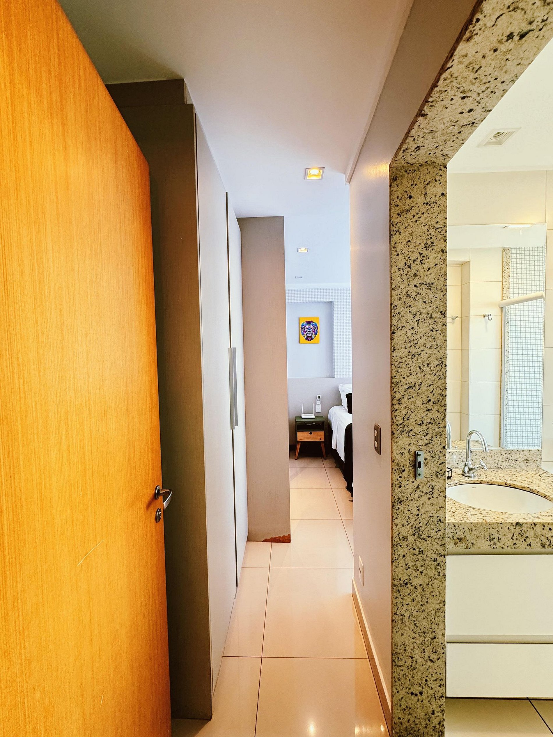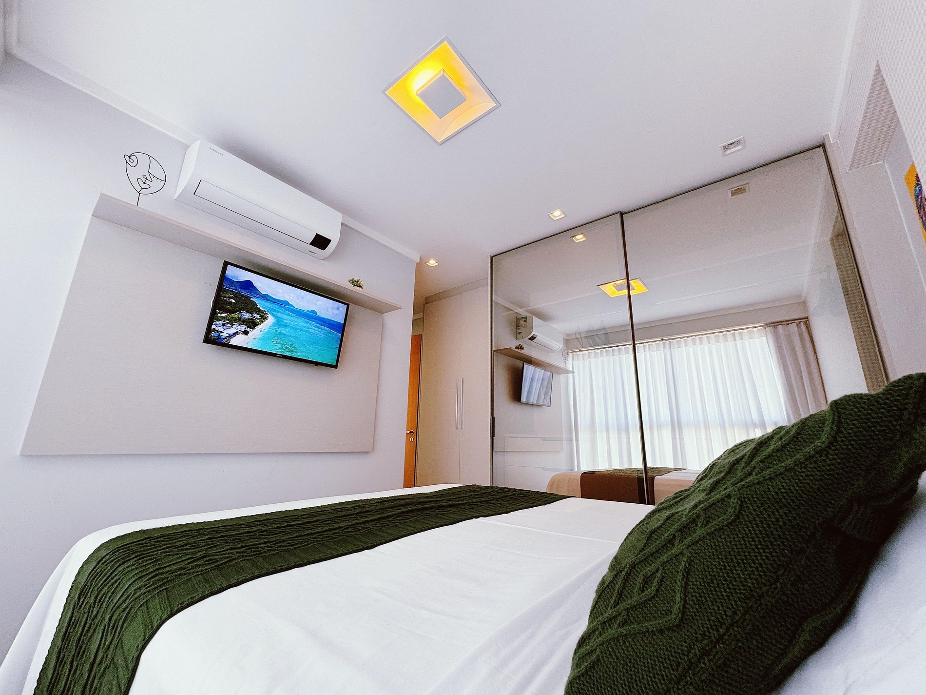 - Quarto com Cama Confortável, armários, Smart TV e ar condicionado;