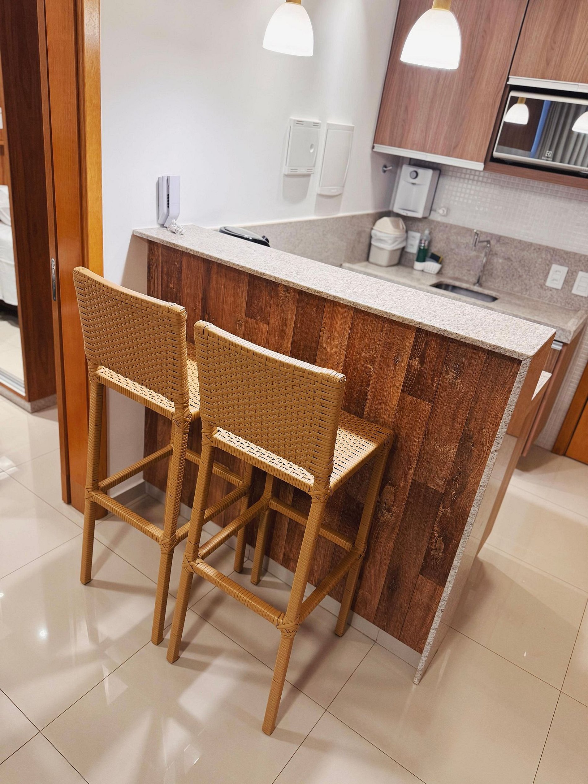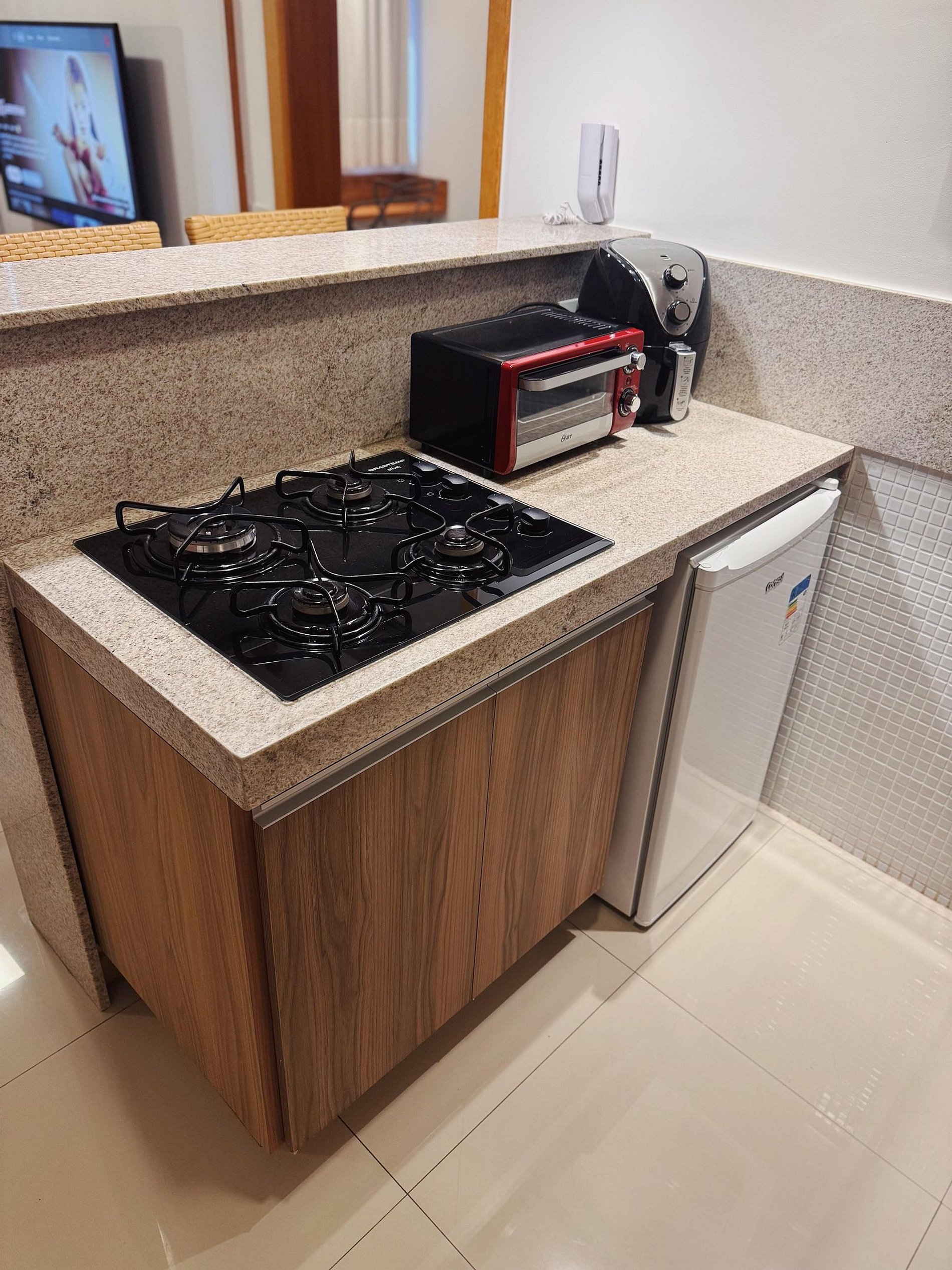 Apartamento possui os itens básicos (micro-ondas, panelas, talheres, geladeira, roupa de cama, amenities, toalhas, etc).
