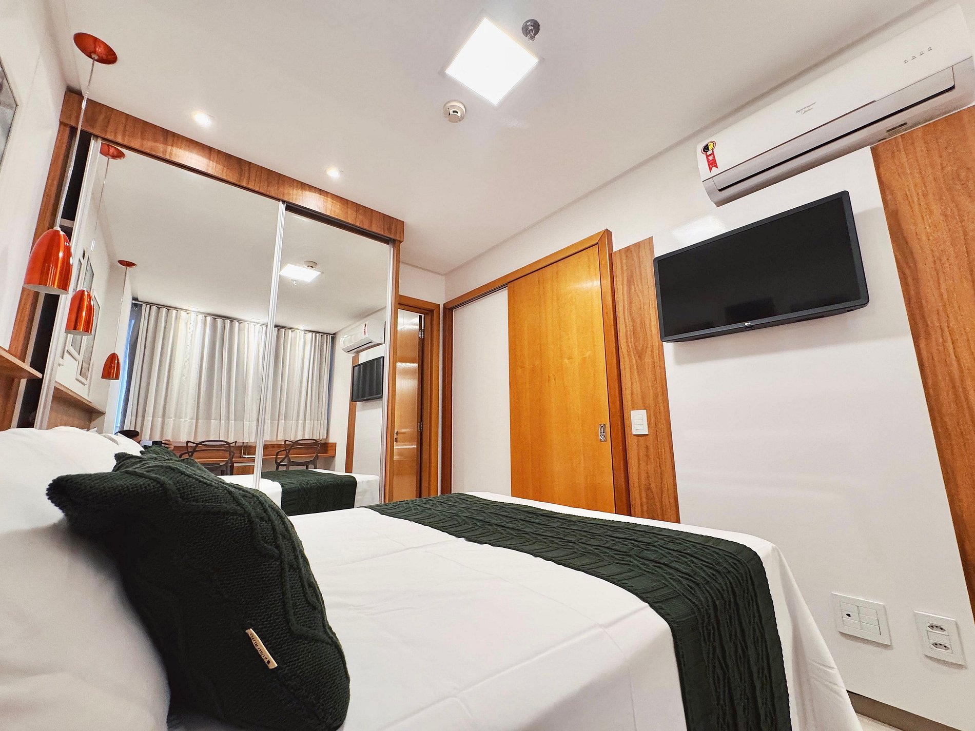 Espaço oferece ar condicionado, wi-fi, 02 TVs, secador de cabelo, ferro de passar roupas, roupa de cama e banho.
