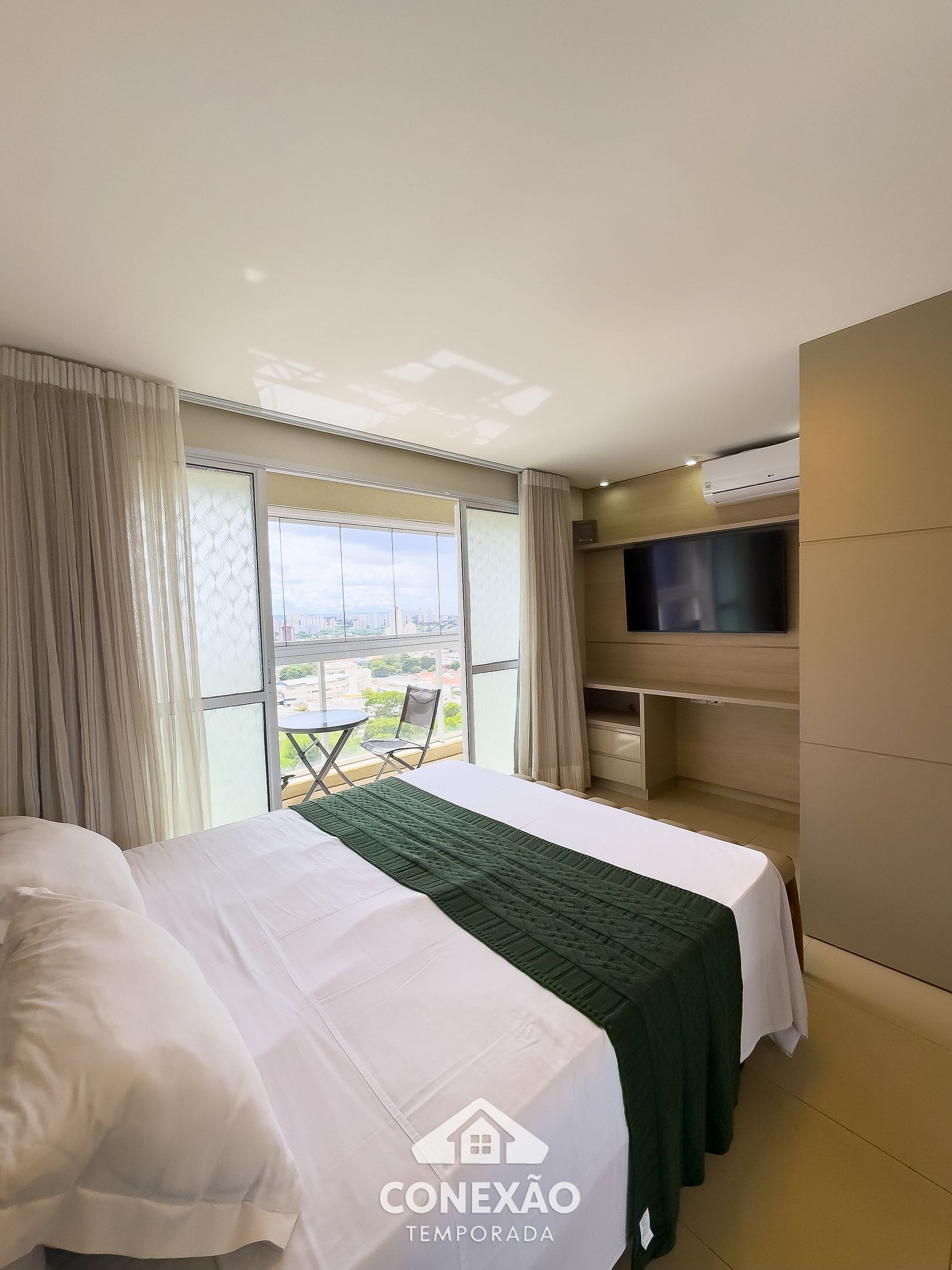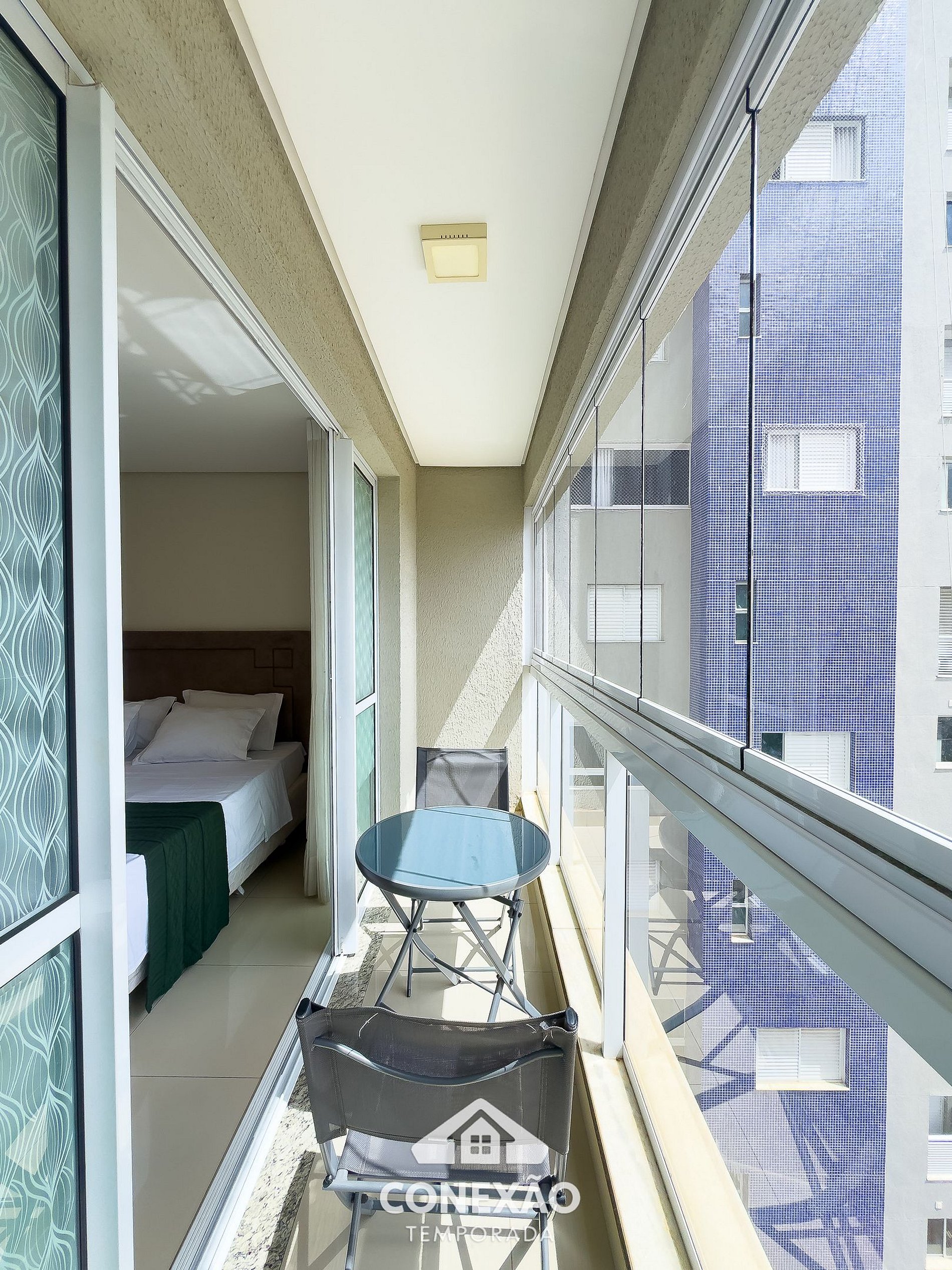 Cozinha equipada, Smart TV, Wi-Fi rápido, ar-condicionado, varanda com vista, check-in sem chave e tudo o que você precisa para máximo conforto durante a estadia.
